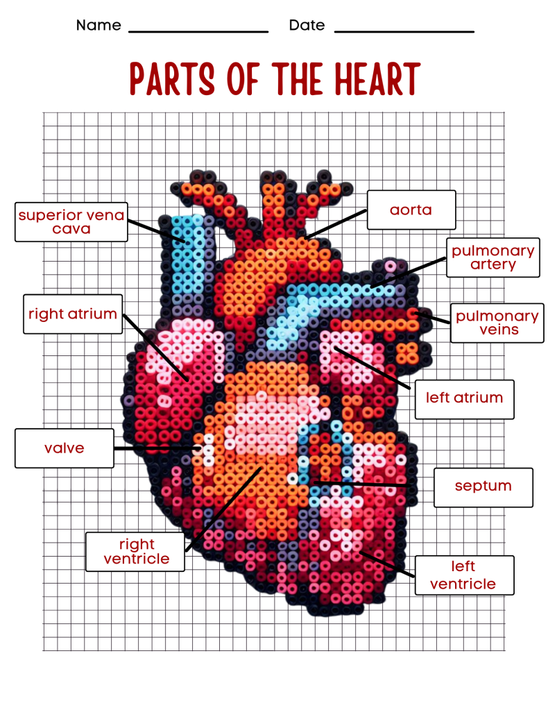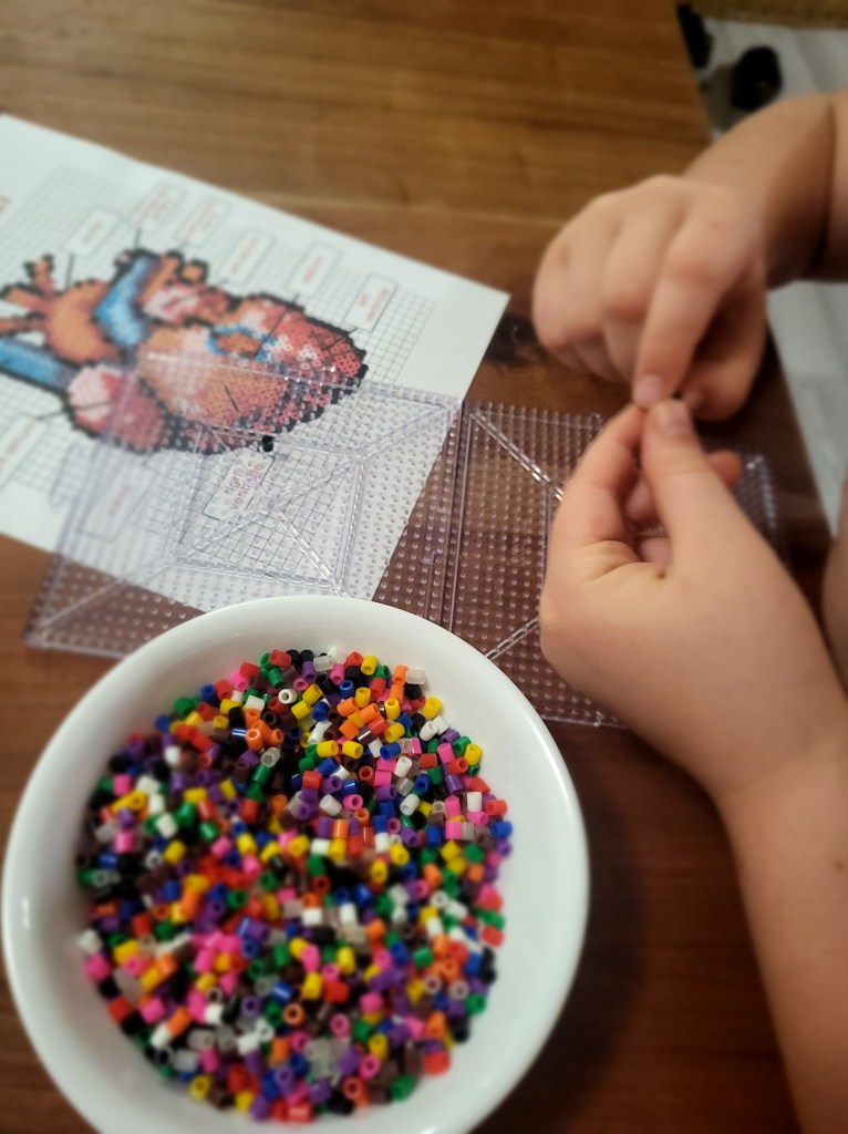 But in the end, we compromised. We’re wrapping up our unit study on human anatomy right now, so I figured if we’re going to do this, we’re going to gosh-darn do it right with a (mostly) accurate anatomical heart made entirely out of Perler beads.